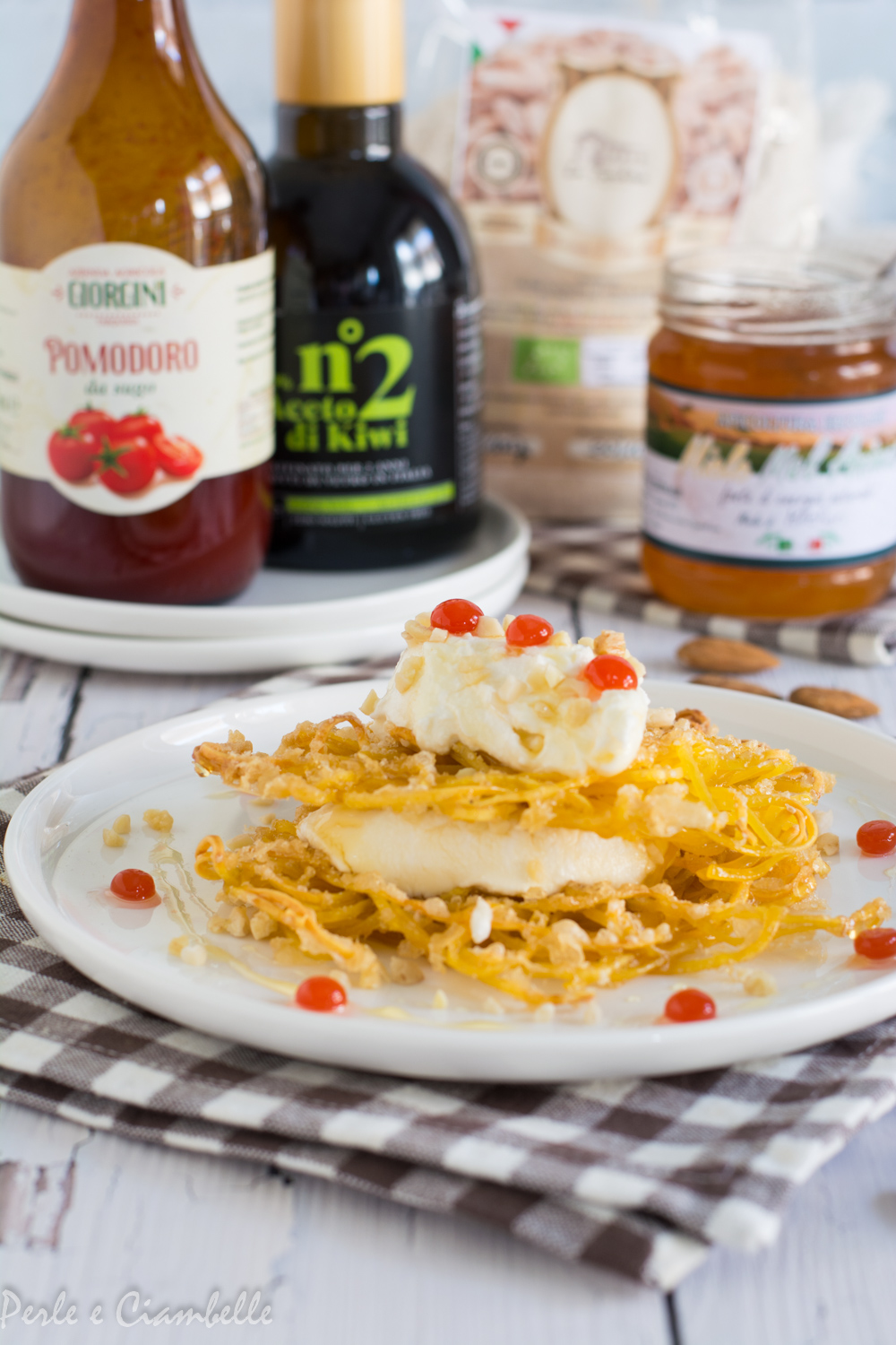 MILLEFOGLIE DI “FIENO DI CANEPINA” CON MOUSSE DI CAPRINO E PERLE AL POMODORO