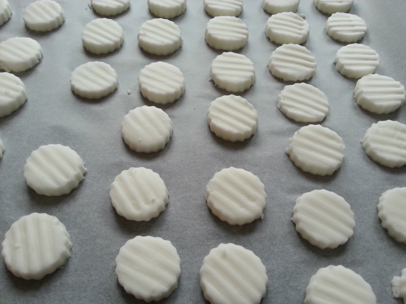 Ora spolverizzate il piano con dello zucchero a velo e con l’aiuto di un matterello stendete il composto in uno spessore di circa 5 mm. Con l’aiuto di un piccolo tagliapasta o stampino per biscotti, ricavate i piccoli cremini. Adagiateli con delicatezza su di una placca rivestita da carta forno e con l’aiuto dei rebbi di una forchetta incidete la superficie come per formare dei piccolissimi solchi decorativi.
