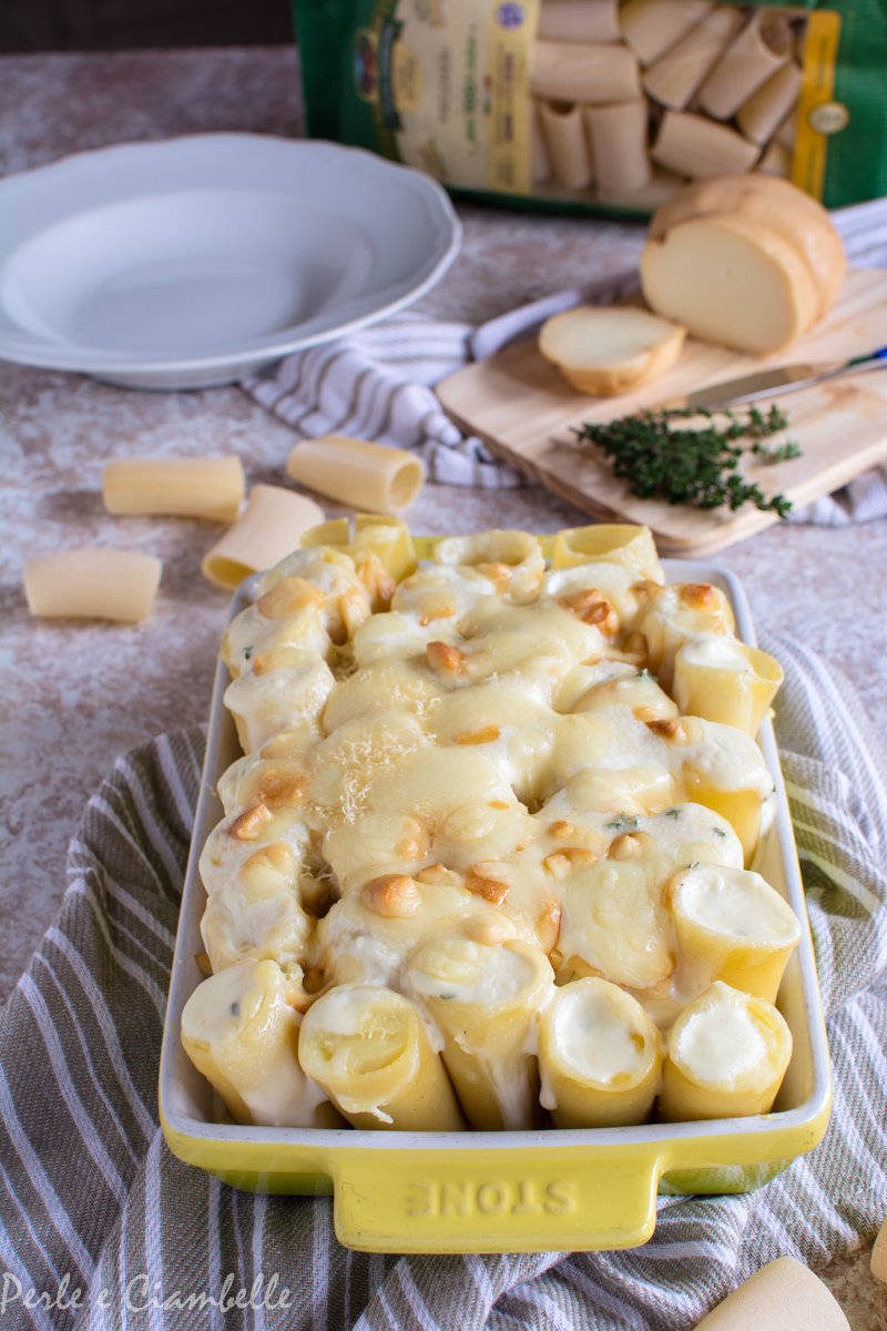 Un primo piatto facile ma godurioso? La risposta ce l’ho io, anzi, ho la ricetta : PACCHERI AL FORNO CON PATATE, TIMO E SCAMORZA AFFUMICATA!