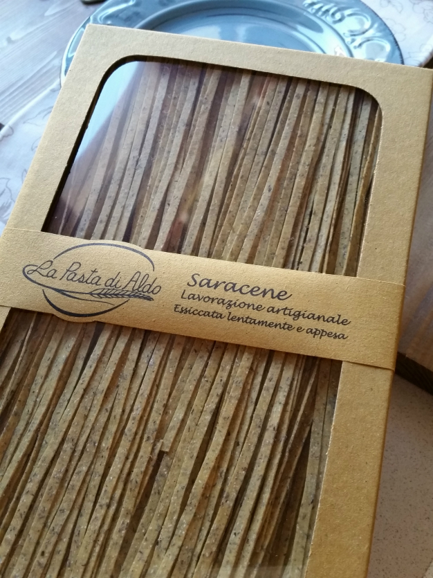 - 1 confezione di tagliatelle al grano saraceno de ” La Pasta di Aldo”, circa 400 g,